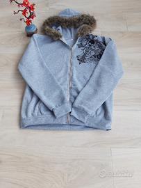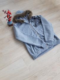 ✨ Felpa Y2K Grigia con Pelliccia e Dettagli Gothic ✨