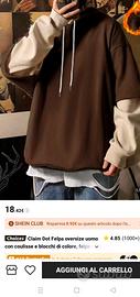 Felpa oversize Shein – colore marrone/cappuccino – maniche lunghe a contrasto.