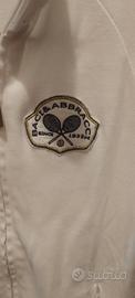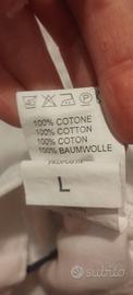 Felpa in cotone taglia L colore bianco con finiture in 'oro'. Tasche ai lati utilizzabili, chiuse con ciarniera