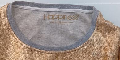 Maniche lunghe Girocollo,Tessuto dorato marca Happiness Los Angeles Rimini, 80% cotone made in Italy taglia S in buone condizioni cpme da foto, qualche piccolo segno di usura, come da foto