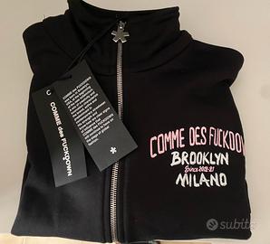 FELPA NERA CON ZIP A MANICA LUNGA CON STAMPA COMME des FUCKDOWN. Mai utilizzata, nuova con cartellino.