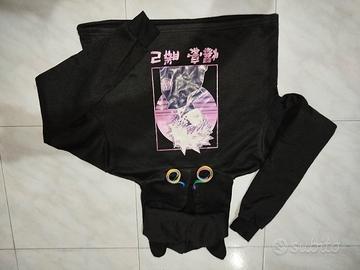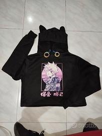 Felpina Crop Top nera con orecchie da gatto, Bakugo, My Hero Accademia, adatta ad una TG 38/40, per ragazze. Zona Arco di travertino. Consegna a mano zone metro A.