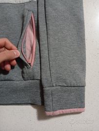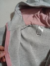 Felpa con cappuccio Decathlon per bambina, taglia 10-11 anni. Realizzata in morbido tessuto grigio chiaro e grigio scuro, con zip rosa e fodera interna in rosa.
