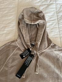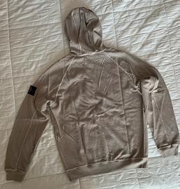Felpa della Stone Island con cappuccio,in cotone malfilé dall'effetto fiammato,con tasche.Pesantezza intermedia.Modello tinto in capo con effetto ‘OLD’, per un aspetto leggermente vissuto.Taglia L, colore beige.