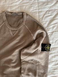 Felpa della Stone Island girocollo in cotone malfilé dall'effetto fiammato.Modello tinto in capo con effetto ‘OLD’, per un aspetto leggermente vissuto.Taglia L, colore verde
