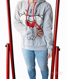 La felpa veste larga e per questo l’ho trovata molto comoda, ha il cappuccio.