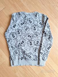 Felpa grigia H&M x Disney a tema Topolino, con stampe nere sparse e logo rosso ricamato sul petto. Taglia XS.