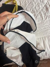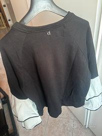 Felpa Dixie nera con un design particolare sulle maniche. へ - Maniche a balze bianche con bordino nero. - Tessuto morbido e confortevole. Modellino largo più lungo dietro. Ampiezza spalle 49 cm circa. Lunghezza davanti 53 cm Lunghezza dietro 60 cm Prezzo di vendita 109€