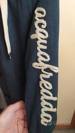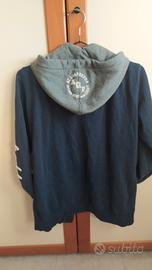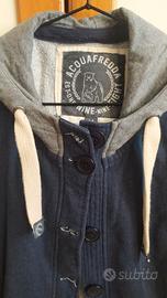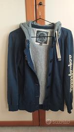 felpa donna tg M marca Acquafredda, colore blu, cappuccio grigio con scritta a rilievo su manica sx. con bottoni e tasche.