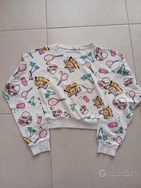 Felpa donna Bershka, in cotone, con spalle cadenti e corta in vita, taglia S, in buone condizioni
