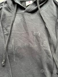 Felpa nera da donna con stampa grafica battito cardiaco e gatto, perfetta per chi ama i gatti 🐱