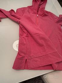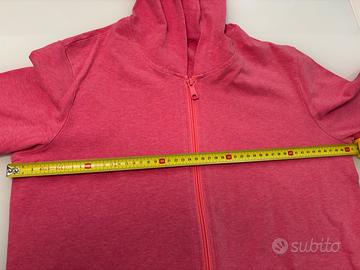 Vendo felpa donna leggera estiva, fuxia, taglia L (etichetta non più presente). Con zip, cappuccio e spacchi laterali. Tasche a filo fatte chiudere attraverso una cucitura dalla sarta. Usata.