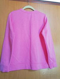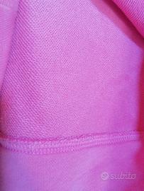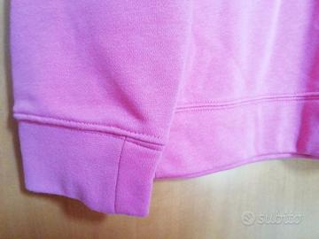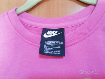 Vendo felpa leggera garzata(non é invernale), donna, color rosa, marca Nike, tg xl,(come si legge sull'etichetta, veste ragazze e donne alte da m.1,56 a m. 1,66).Composizione: 80%cotone e 20%poliestere. É elasticizzata. Misure: larghezza da fianco a fianco cm. 48 e lunghezza cm. 62. Mentre la lunghezza maniche é cm. 59,5.
