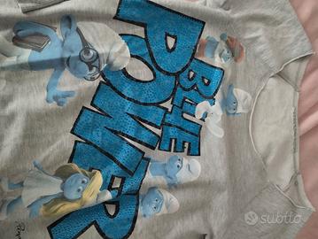 Felpa donna: taglia M; colore grigio con scritta azzurra con brillantini; garzata; marca Puffi