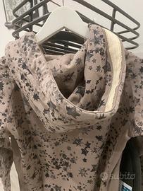 Felpa mai usata, in cotone garzato con cappuccio. Il colore è rosa antico scuro. Molto bella. La taglia xs anche se non è presente l’indicazione all’interno del capo.