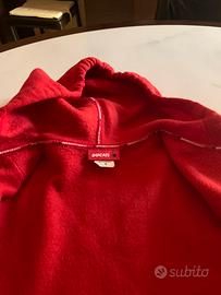 Felpa DUCATI Performance originale in pile con cerniera antivento e cappuccio regolabile. Taglia S ma veste 48/50. Classico colore rosso Ducati con bande sport sulle maniche e scudetto Ducati. Polsini alle maniche e fondo.