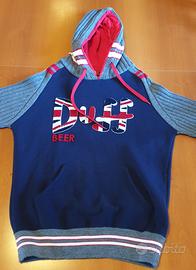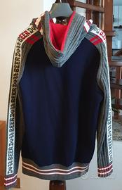 Felpa taglia L , cappuccio in lana foderato, anche le maniche sono realizzate in lana, caldo e comodo. Pari al nuovo.