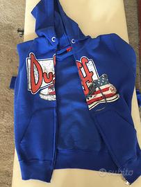 Felpa nuova marca DUFF taglia S/M da adulto con cerniera e cappuccio , stampa davanti unisex .