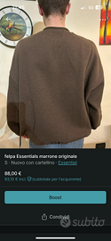 Felpa ESSENTIALS marrone nuova, con cartellino taglia S, ampia vestibilità