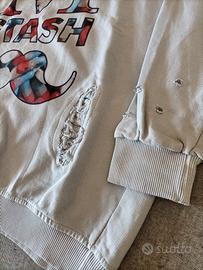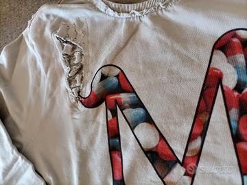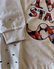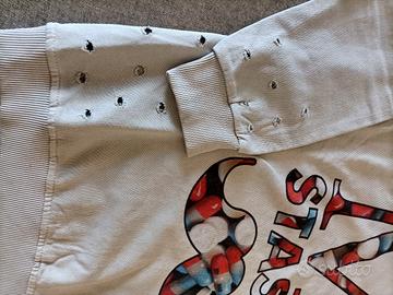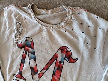 Felpa Estiva LEGGERISSIMA Brand NO NAME Materiale 50% Cott. 50% Poliestere Modello girocollo Invecchiato con strappi e fori Taglia XL Colore Avio chiaro Misure: Sotto ascella 54cm Altezza 72cm Lunghezza manica sopra 63cm Lunghezza spalla 16.5cm Lunghezza sotto ascella al fondo 46cm Larghezza fondo cm44 Larghezza polsino 11cm Apertura collo 17cm