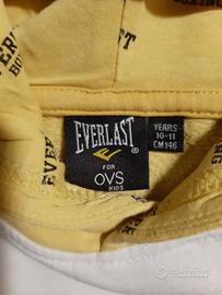Felpa Everlast taglia 10-11 anni (altezza 146 cm) gialla, bianca e nera con cappuccio, tasca anteriore e profilo sulle maniche con scritta Boxing Everlast nero su nero come si può vedere in foto.