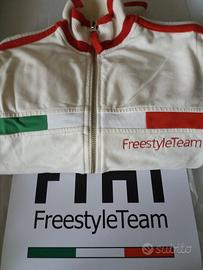 Felpa FIAT FREESTYLE TEAM tg. 42 ( veste stretto ) con zip. Le fasce tricolori che dalle spalle scendono per tutta la manica sono leggermente imbottite, rendendo la felpa un modello originale.