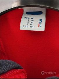 Felpa Fila rossa uomo anno 2000 in cotone felpato , collo alto con zip , modello comodo , condizioni ottime veste una 50 italiana , guardare le misure , anche quelle che metto nei dettagli