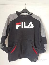 Felpa Fila taglia S Con cappuccio e doppie tasche anteriori entrambe passanti , una con zip e una senza zip. Elastico infondo, Colori nero e grigio.