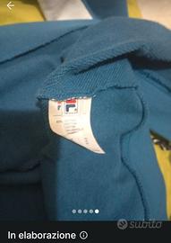 Felpa con cappuccio e zip Fila originale, linea Team Sport Heritage. Colore blu elettrico con dettagli bianchi e rossi. Logo applicato sul petto e patch celebrativa "Since 1973" sul fondo. Taglia [inserisci taglia]. Tessuto morbido e ben conservato.