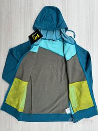 Felpa full zip con cappuccio, pensata per chi ama muoversi all’aria aperta ma vuole comfort, traspirabilità e protezione.