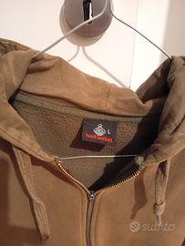 Vendo la felpa in foto. Verde militare e taglia L. È da sistemare il pezzetto della cerniera come da foto, cerniera che comunque funziona perfettamente.