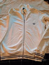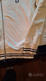 Felpa Fred Perry bianca con rifiniture blu. 100% cotone. taglia L