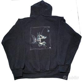 VENDO FELPA MANICHE LUNGHE CAPPUCCIO FRUIT OF THE LOOM X CRAZY FISH UNISEX VINTAGE NERA IN OTTIME CONDIZIONI