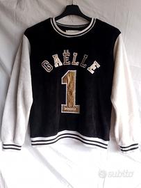Bellissima e calda felpa di Gaelle Bonheur Paris, taglia: 2 (corrisponde a una 38 italiana, ma controllate le misure precise sotto), colore bianco e nero, fantasia con la scritta del marchio, tessuto caldo composto da: 90% poliestere e 10% cotone, felpata fuori.