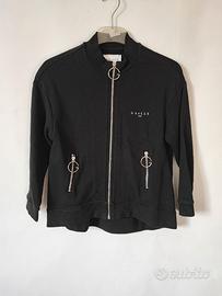 Giacca donna nera in felpa Gaelle Paris, tessuto di cotone, in ottime condizioni, chiusura con cerniera e logo bianco sul petto, polsini e orlo elasticizzati, die tasche davanti chiuse con zip e anelli decorativi, made in Italy, taglia M, spalla scesa, spalle cm 47, manica cm m43, lunghezza cm 60