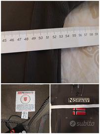 Felpa con cappuccio Geographical Norway tg. L nuova al 100%, con cartellino attaccato, in poliestere marrone, girocollo vellutato rosso, 2 tasche laterali, 1 tasca grande sul petto, cordicella di regolazione nel cappuccio, zip sul collo, polsini nelle maniche, interno molto felpato.