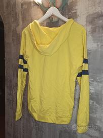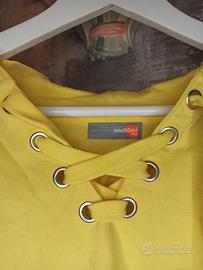 Vendo bellissima felpa color giallo vivace del brand IntelliGent Store. Il capo si distingue per il particolare scollo a V con lacci intrecciati e occhielli metallici, che gli conferisce un tocco unico e femminile.