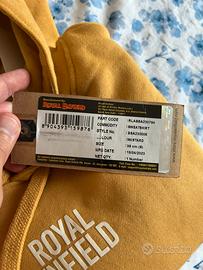 Felpa con cappuccio Royal Enfield gialla, nuova, mai usata, taglia 38/S