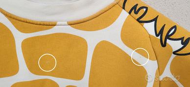 Spettacolare felpa girocollo Adidas Originals X Jeremy Scott della Collezione Autunno/Inverno del 2009 a tema Africa. Con stampa animalier di una simpatica giraffa sul fronte, retro e sulla manica sinistra. Modello unisex, OSFA (One Size Fits All), quindi è una Taglia Unica dalla vestibilità oversize. Composizione: 80% Cotone 20% Poliestere. Presenta un paio di macchiette a malapena visibili sotto alla zona del colletto (una piccola sbavatura bianca e un minuscolo puntino rossastro) e sul retro del polsino destro c'è qualche lievissimo ingiallimento che si può notare soltanto sotto una forte luce. Queste imperfezioni sono mostrate chiaramente nelle ultime due foto. Pezzo RARISSIMO, praticamente impossibile da trovare su Internet, un capo iconico da collezione per veri appassionati. Ritiro a mano o spedizione con TuttoSubito.