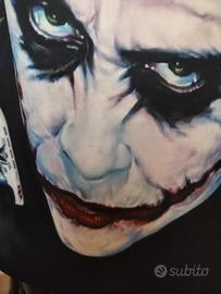 Felpa vintage anni 2000 "The dark knight Joker" Heath Ledger taglia S. Girocollo e maniche lunghe ,di colore verde scuro con stampa di un bellissimo primo piano dell'attore Health Ledger interprete di Joker.La stampa è presente sul capo sia davanti che dietro la schiena. Composizione : 65% cotone, 35% poli..Dimensioni :40 cm larghezza spalle,60 cm lunghezza totale,49 cm larghezza sotto ascelle.Lavandolo in lavatrice a 30 gradi, nonostante sull'etichetta sia consigliato il lavaggio a secco,si è conservato in perfetto stato.Ottime condizioni.Possibile consegna a mano ad Arcore,Monza,Sesto e a Milano.