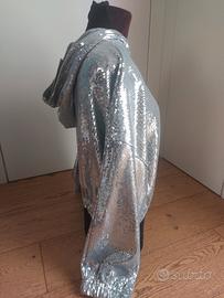 felpa leggera con cappuccio glitter nuova