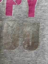 Vendo felpa grigio chiaro con stampa frontale color fucsia e argento, con interno felpato.