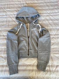 Felpa !M?ERFECT corta con maxi cappuccio, zip centrale, colore grigio, in caldo cotone , tg. xs. Usata solo una volta, pari al nuovo. #felpa #imperfect #grigia #capouccio #corta #xs