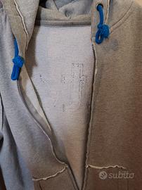 La felpa è in ottime condizioni, con solo segni di perdita di colore nella zona del collo e delle maniche