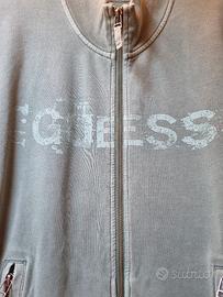 Felpa uomo originale Guess, colore verde.Modello full zip con colletto alto e due tasche laterali con cerniera.Logo Guess ricamato/stampato sul petto.