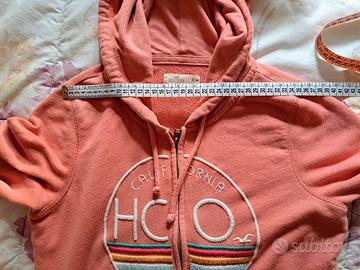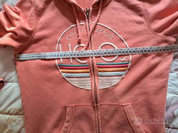 VENDO FELPA DA DONNA, CON CAPPUCCIO E ZIP. MARCA HOLLISTER, COLORE PESCA, TG. M. TASCHE DAVANTI , POLSINI ED ORLO A COSTINE PER UNA VESTIBILITA’ CONFORTEVOLE. MISURE COME DA FOTO. HA UNA PICCOLA MACCHIA SUL DIETRO DELLA MAGLIA (COME EVIDENZIATO NELLA FOTO), MA PER IL RESTO E’ IN OTTIME CONDIZIONI