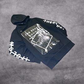Felpa con cappuccio 73 Brand – Far Roads Society, colore nero con stampa grande frontale e scritte sulle maniche. Capo in perfette condizioni, nessun difetto. Stile streetwear / urban con grafica fotografica e lettering, molto particolare e difficile da trovare. Interno caldo, tessuto morbido, vestibilità comoda. Perfetta per outfit casual, vintage o skate style. Taglia indicata in etichetta, taglia XXL, veste M/L. Spedizione veloce 24/48h Accetto offerte