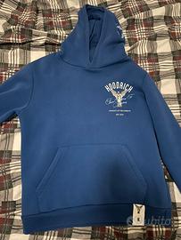 Felpa blu con cappuccio, nuova e mai indossata. Presenta ricami di qualità sia davanti che dietro, con scritta ricamata sul retro e dettagli anche sul cappuccio. Stemma ricamato sul davanti e dietro che la rende unica. Interno in tessuto felpato (caldo e morbido), perfetta per inverno/autunno. Vestibilità comoda, ideale per outfit streetwear o casual. 📏 Taglia: (M) 💯 Condizioni: nuova 🚚 Spedizione veloce