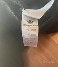 Felpa nera firmata Dsquared2, modello con cappuccio e tasca frontale a marsupio. Sul petto presenta la stampa “ICON” con effetto vissuto e logo Dsquared2 sopra, in colore bianco a contrasto. Specifiche: Brand: Dsquared2 Colore: Nero Modello: Hoodie (felpa con cappuccio) Stampa: ICON frontale con effetto distressed Tasca: Tasca a marsupio frontale Cappuccio: Regolabile con laccetti Materiale: Tessuto morbido (cotone/misto cotone) Produzione: Made in Italy (come da etichetta) Condizioni: Buone, normali segni di utilizzo Perfetta per un look casual e streetwear di qualità.