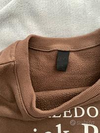 La felpa è stata indossata pochissime volte. Nonostante sia composta principalmente da poliestere, il tessuto risulta morbido al tatto. La stampa è completamente integra e non presenta segni di usura. In generale, la felpa è in ottime condizioni e senza alcun danno.